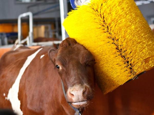 - kartáčuje krávy po celém těle, vykyvuje se nad i podél těla krávy
