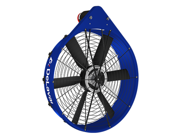 Derfor besluttede Carsten i foråret 2020 at investere i DeLaval staldventilatorer. Han fik sat 5 stk. op hen over sengebåse og opsamlingsplads og 3 stk. hen over goldko-afdelingen, hvor køerne går på dybstrøelse. De dækkede samtidig en del af området, hvor kvierne var opstaldet. Ventilatorerne styres alle automatisk og starter ved en bestemt temperatur, så de passer stort set sig selv.