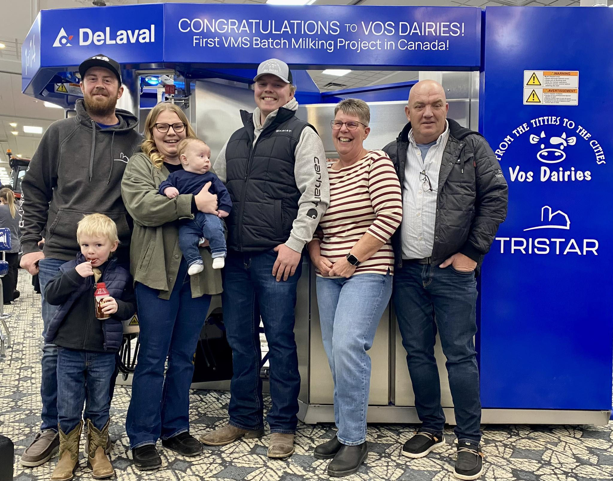 Caption: The Vos family was recognized for being the first VMS™ Batch Milking operation in Canada by equipment dealer Tristar Dairy Center Ltd. at the Manitoba Dairy Conference, Dec. 3-5.