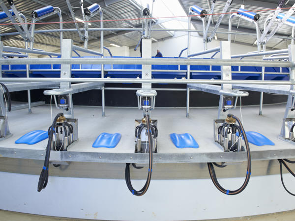 “We are saving five hours a day milking and our yield has increased by 2000 litres per cow because we added a 60-point E100 rotary parlour”