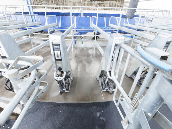La plataforma rotativa lleva las vacas a los ordeñadores con el mismo intervalo de tiempo entre uno y otro animal. Esto permite que trabajen a un ritmo equilibrado y consistente: ni tan rápido, que haga que la rutina sea estresante, ni tan lenta que la haga improductiva. La rutina de trabajo es más fácil y el ordeño más satisfactorio.