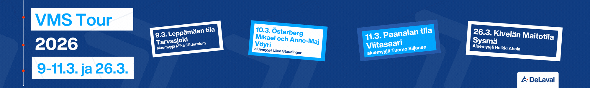 26.3. Kivelän Maitotila, Sysmä. Aluemyyjä Heikki Ahola, 040 679 8114, heikki.ahola@delaval.com