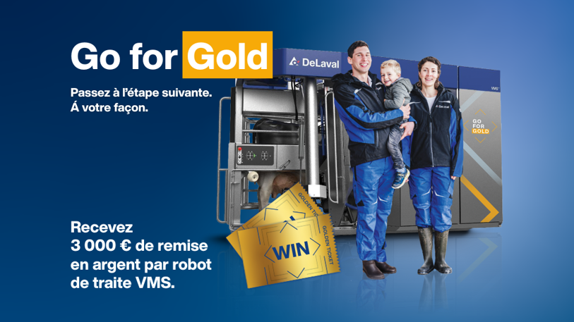 En achetant l'un des modèles DeLaval VMS™ V300 Series Gold Edition, vous participez automatiquement à un tirage au sort pour gagner un voyage tout compris en Suède. Vous visiterez notre toute nouvelle étable VMS à Hamra Farm !