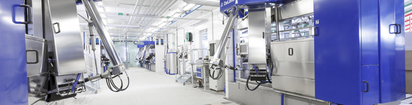 Les robots sont disposés en forme de L avec deux d'entre eux dans une salle le long du mur latéral et un dans sa propre salle sur la traverse, aligné avec la rangée de logettes tête à tête. Étant une expansion/modernisation d'une étable avec table d'alimentation centrale, la localisation de tous les robots dans une salle n'est pas possible. Toutefois, nous étions encore en mesure de rester dans des limites acceptables pour le transport du lait, le lavage, et une mise à niveau éventuelle du système vers le VMS Supra+. La disposition des robots rend cela possible.