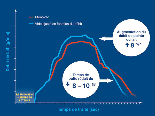- >7% plus rapide / -25 secondes dernière vache prête avec le vide adapté au débit*.