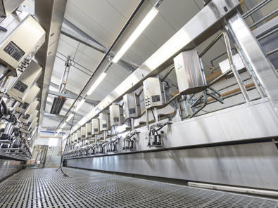 La circulation de conception très fonctionnelle de la Salle de traite en épi HDHB crée un environnement de travail confortable à la fois pour l'éleveur et pour les vaches. Elle permet un nettoyage rapide puisque les pièces essentielles au fonctionnement sont dissimulées en toute sécurité sous les cabinets - sauvant du temps, de la main-d'œuvre et des coûts. Le large couloir d'entrée aide les vaches à se sentir à l'aise dès le début. Nous avons éliminé les parties structurelles non essentielles pour aider à maintenir les vaches en position. Ceci a simplifié la salle de traite, et avec les rails de poitrine qui s'élèvent pour la sortie des vaches, cela créé une large plate-forme ouverte pour une meilleure circulation des vaches. La plate-forme ouverte rend également le nettoyage de la salle de traite beaucoup plus facile.
