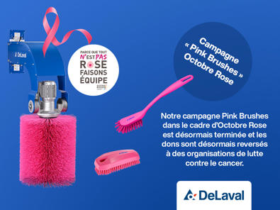 Le cancer est une préoccupation mondiale et nous, DeLaval, voulons soutenir le travail important que les organisations accomplissent à travers le monde pour trouver un remède et aider les personnes concernées. Du 1er octobre jusqu'au 15 novembre 2025, les clients pouvaient acheter une brosse à vaisselle rose en édition spéciale, une brosse à ongles ou un cylindre rose pour brosse rotative, dont une partie des revenus serait reversée à des associations. Nous sommes très heureux de l’accueil que les éleveurs ont à nouveau fait à cette opération.