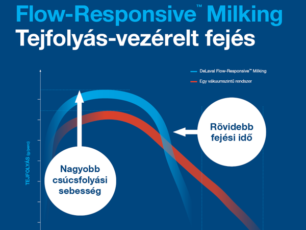 Ha egy fejési rendszer a tehenek tejleadási sebességéhez alkalmazkodik, az gyorsabb fejést tesz lehetővé és segít megóvni a tőgybimbók egészségét és az állatok jólétét. Az új DeLaval Flow-Responsive™ Milking vagyis a tejfolyás által vezérelt fejéstechnológia követi és segíti a tejáramlást. A hagyományos, egy vákuumszintű rendszerrel minden tehenet azonos vákuum és pulzáció beállításokkal fejünk, ami azonban sok állat esetében nem az ideális fejési folyamatot eredményezi.