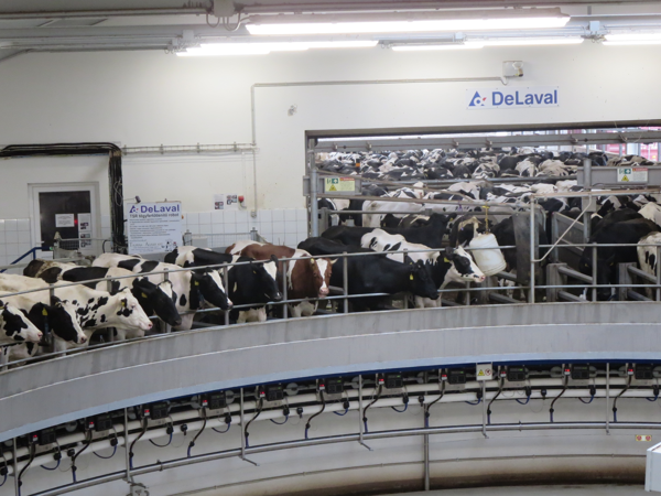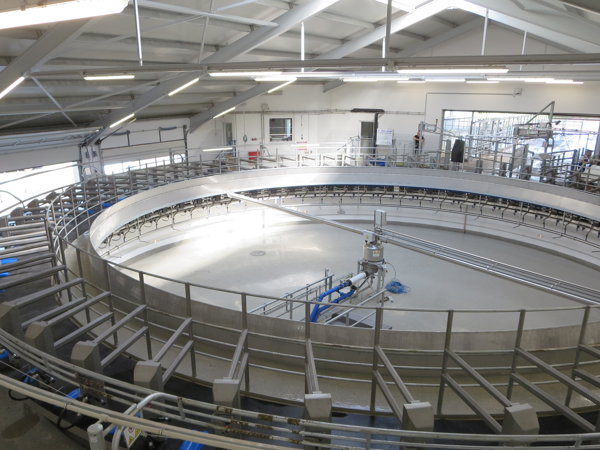 A 60 állásos körforgós fejőberendezéssel 3 fejőmunkás átlagosan 280 tehenet képes óránként megfejni. Az áteresztőképességet a tehenek belépési ideje nagymértékben meghatározza.