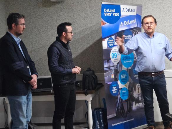 A program első részében Dr. Kovács Péter, az Állatorvostudományi Egyetem mesteroktatója, valamint Dizseri Tamás, a DeLaval szaktanácsadója tartott közös előadást a tőgyegészség aktuális kihívásairól és a robotizált rendszerekben alkalmazható korszerű diagnosztikai megoldásokról.