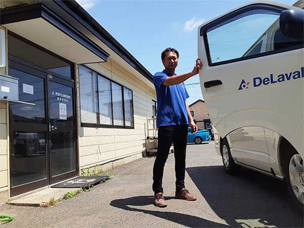 主に当社製品を使用頂いている酪農家様を訪問し、搾乳ロボットや機械を修理・メンテナンスしています。