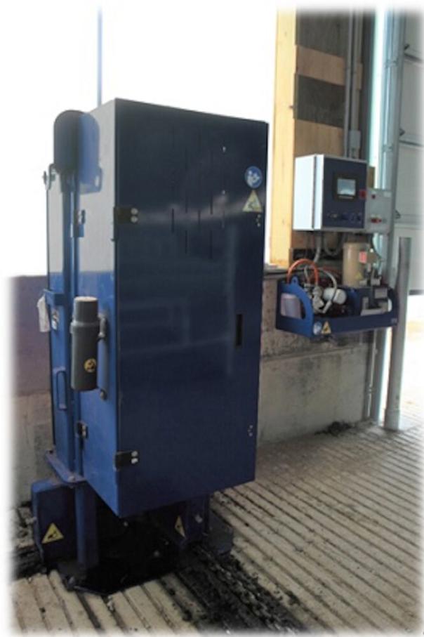 低エネルギーモーター、高負荷に対応したギアボックス、チェーンテンショナー、ポケット型チェーンスプロケットの採用により、長時間の走行と低メンテナンスを実現しています。 ドライブユニット+コーナーホイール、コントロールボックス、チェーン、スクレーパーで構成されています。チェーンは床の上やスチールトラックの上を走らせることができます。