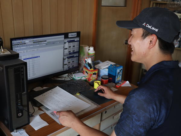 搾乳作業自体がないことで肉体的にはかなり楽になっていますが、自分が年齢を重ねているので実感としては少な目ですね。しかし、搾乳作業は朝・晩にそれぞれ2時間の拘束時間が出てきますが、搾乳ロボットにすることで自分が好きな時間に他の作業ができる、それはとても大きい変化です。あと、今は自分がやっているけど、誰でも管理ができるようになっているとも言えますね。変なこと言えば、数字さえ見ることができれば素人でもできると言えます。