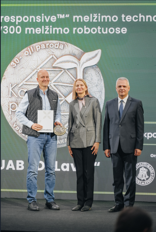 - „Flow‑Responsive™“ Melžimas (FRM) – tai melžimo technologija, kuri dinamiškai prisitaiko prie kiekvienos karvės pieno tekėjimo greičio, kad melžimas būtų efektyvesnis, greitesnis, švelnesnis karvei ir labiau individualizuotas pagal jos fiziologiją. FRM technologija buvo pripažinta viena inovatyviausių 2026 m. parodos technologijų ir apdovanota medaliu. Šis apdovanojimas – ne tik technologinis pripažinimas, bet ir įrodymas, kad judame teisinga kryptimi kartu su Lietuvos pieno ūkiais.