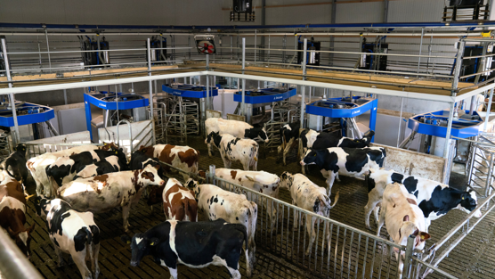 “Zeker! Met elf melkrobots melken we onze 500 koeien drie keer per dag op vaste tijden. Dit systeem heeft onze dagelijkse routine enorm verbeterd. Waar we vroeger met 2,5 personen moesten melken, kan nu 1 persoon de taak afhandelen. Dit komt doordat de koeien, net als bij een gewone melkstal, in groepen naar de melkrobots worden geleid en hier volledig automatisch gemolken worden. Hierdoor kan de melker ondertussen andere werkzaamheden doen zoals kalveren voeren, voer aanschuiven, ligboxen vullen enzovoort.”