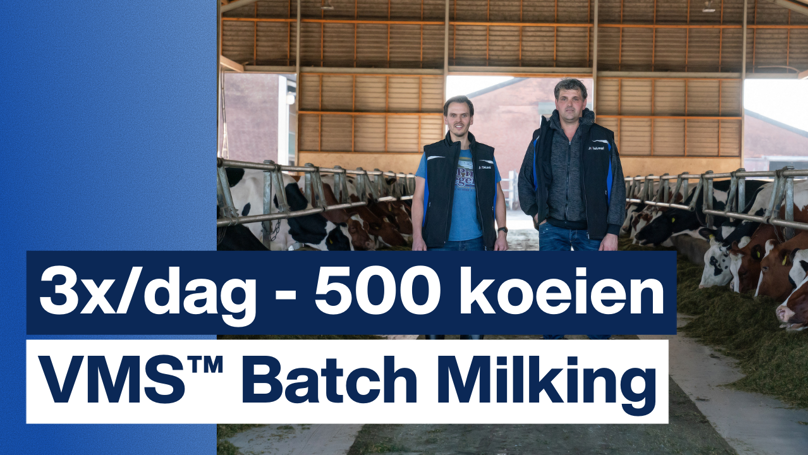 VMS batchmelken combineert traditioneel melken met moderne robottechnologie, hierdoor is een effectief en efficient beheer van veestapels mogelijk met minder arbeid. Deze manier van werken optimaliseert het gebruik van middelen zoals arbeid, water en energie door alleen te melken wanneer dat nodig is, wat bijdraagt aan duurzaamheid van speen tot tank.