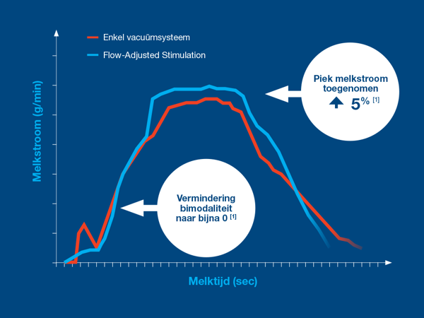 - >10% sneller / -50 seconden laatste koe uit met Flow-Adjusted Stimulation[1]