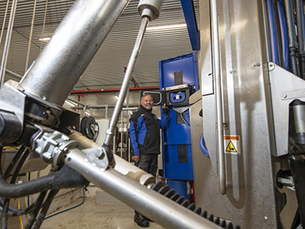 Melkeroboten hos Aunan er selvsagt den nye V310, og den er utstyrt med både brunstregistreringsteknologien RePro™ og holdvurderingskamera.