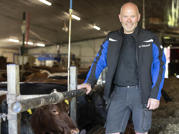 – Det er herlig å kunne sitte her å si at jeg er ferdig i fjøset, smiler Frode Lund. Vi sitter på terassen på Storborg Østre i Levanger, og Lund forteller om sin nye hverdag etter å ha byttet ut den gamle tandemstallen med en VMS™ V310 melkerobot.