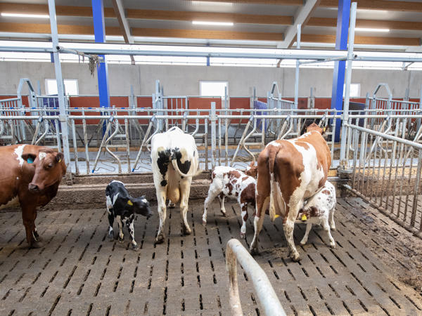 - DeLaval innredning, blant annet tilrettelagt for at kalven kan gå med kua.