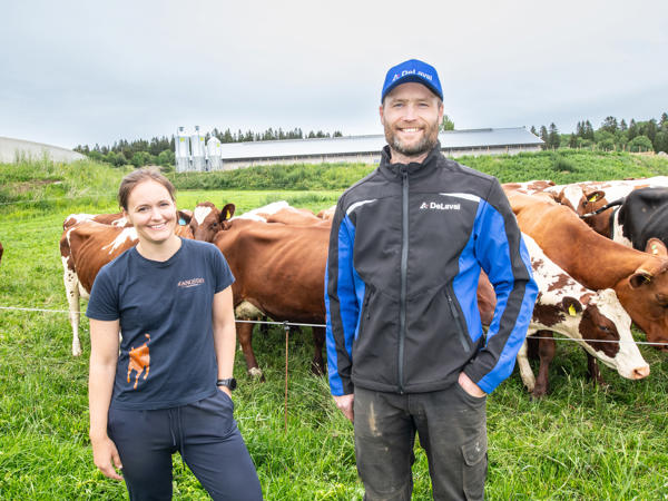– Det er drifta av ysteriet som gjør at vi kan bygge et slikt fjøs, sier Ole Morten Gangstad (35). Han har ansvaret for fjøset og gårdsdrifta, mens kona Maren er daglig leder i ysteriet.