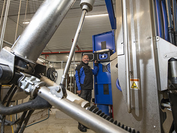 Melkeroboten hos Aunan er selvsagt den nye V310, og den er utstyrt med både brunstregistreringsteknologien RePro™ og holdvurderingskamera.