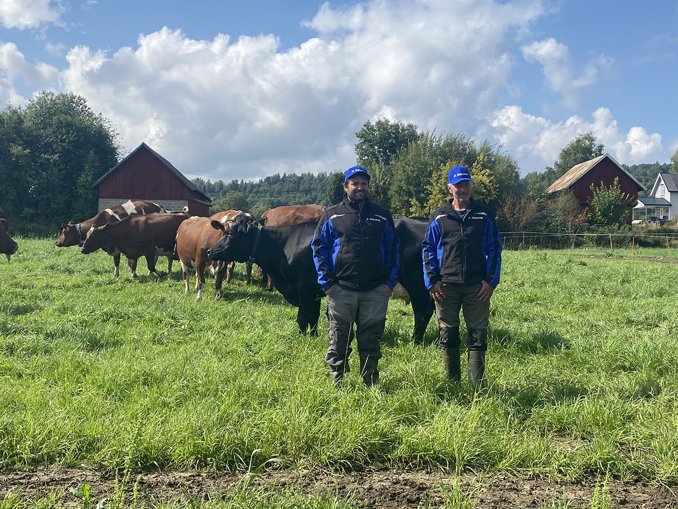 Hos Ne-Ko Samdrift har de skaffet seg en Sirkulasjonsvifte fra DeLaval. – Vi har beite rett utenfor fjøsdøra, og da vi begynte å ha dyra ute, og lot døra stå åpen, så fungerte ikke ventilasjonsanlegget som det skulle. Vi hadde sett at de har slike vifter neover i Europa. I vinter kjøpet vi en og monterte den nå å i våres, så vi har hatt første sommer med vifte.