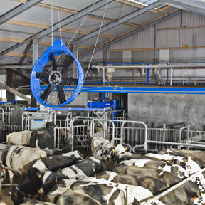 Takmontert vifte for melkestaller eller VMS for å sikre god luftsirkulasjon. Viften er spesielt beregnet til å redusere forekomst av fluer. Viften leveres med en enkel hastighetskontroll EW5, som responderer på temperaturen i fjøset.