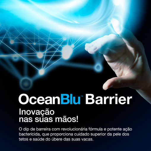 O OceanBlu™ Barrier é um pós dipping não iodado de barreira, de alta performance, com formulação a base de ácido glicólico e tecnologia Glytec para cuidar da saúde do úbere das suas vacas.