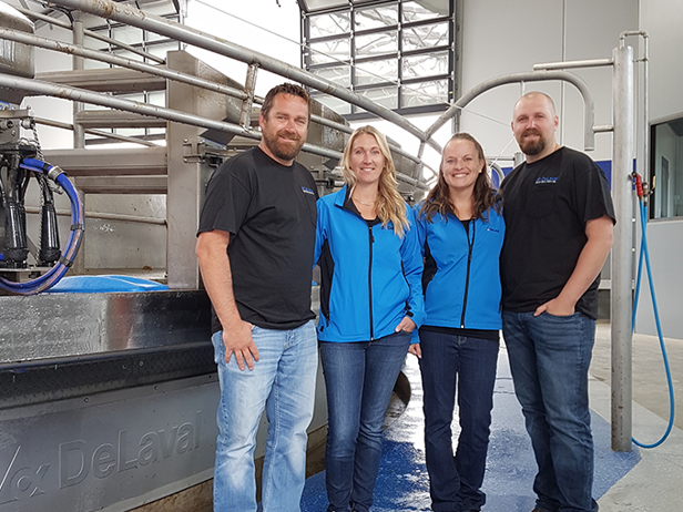 Pete and Jess Heidelberg & Andrew and Carina Tenbrinke own and operate Five Star Dairy in Lacombe, Alberta. They achieve high efficiency with their DeLaval Rotary milking systems PR3100HD and DeLaval TSR teat spray robot. DeLaval BCS body condition scoring camera and DeLaval Activity meters help optimize herd management at Five Star.