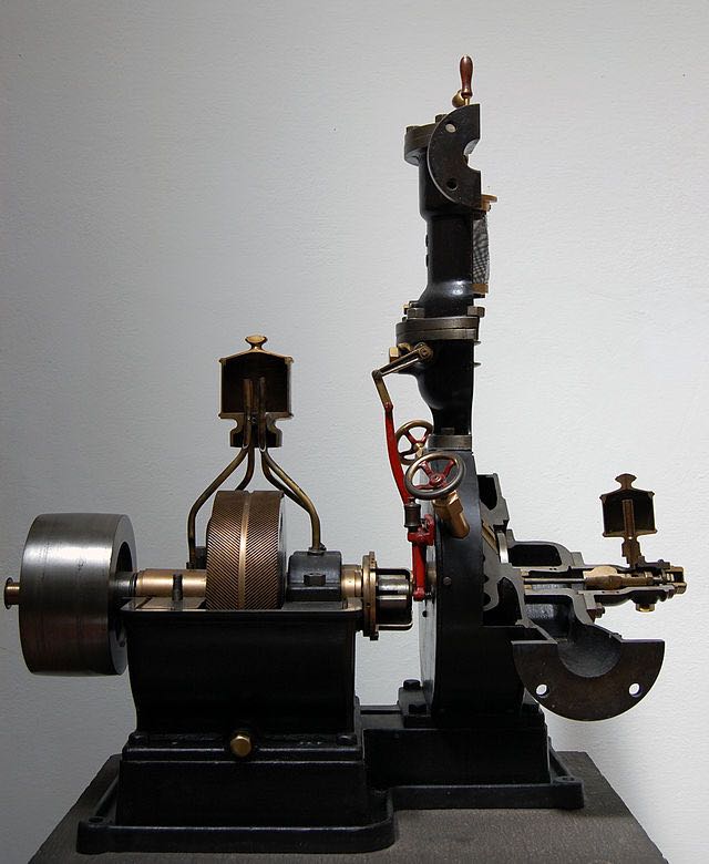 除了对奶业发展做出了巨大贡献,古斯塔夫的发明还推动了蒸汽涡轮机的发展。1882年,古斯塔夫提出了冲动式蒸汽涡轮的理念,并于1887年建造了涡轮机原型。上图为他于1888年建造的冲动式涡轮机,现收藏于德国慕尼黑的Deutsches Museum博物馆。